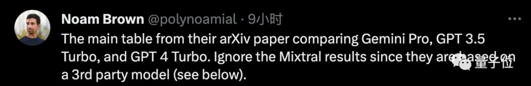不过强化学习专家Noam Brown认为可以忽略其中Mixtral的结果,因为用的是第三方API而非官方实现。