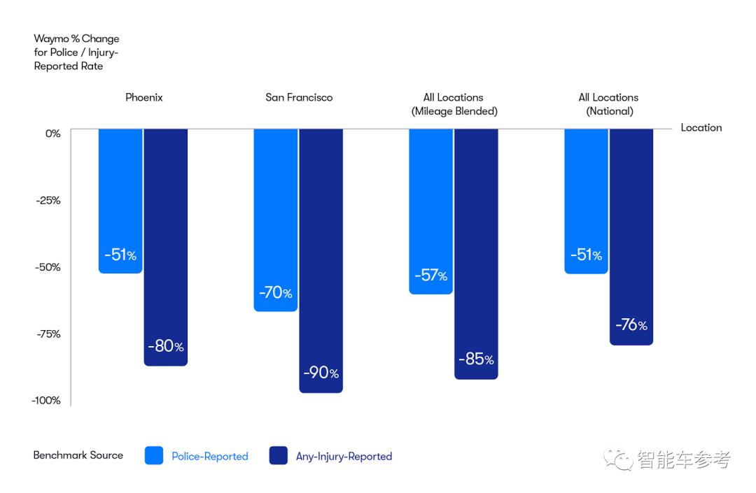 更明确一点说,如果在这些运营城市都是Waymo的Robotaxi在跑,可以减少17起会导致人类受伤的交通事故。