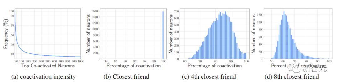 另外,对于每个神经元,该神经元与其他神经元的共同激活形成幂律分布,如下图a所示。这里将与神经元共同激活的神经元称为最亲密的朋友(closest friend)。