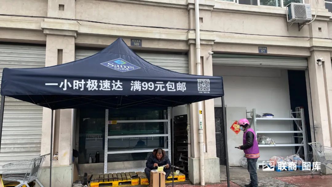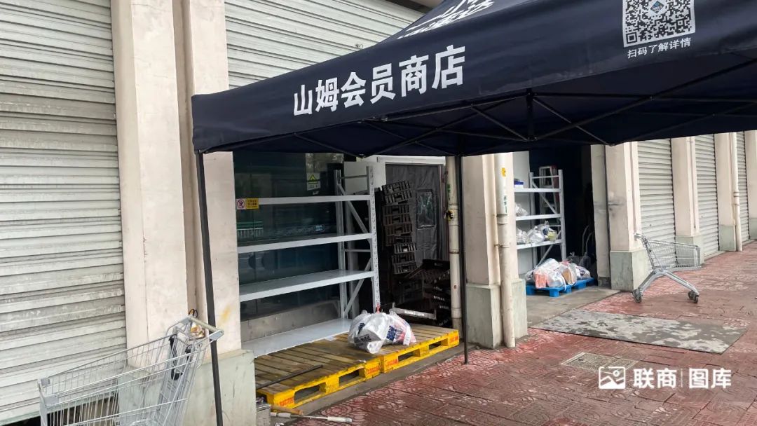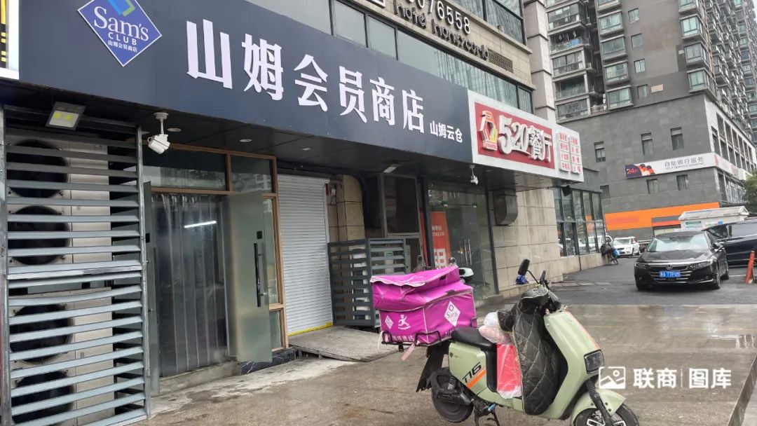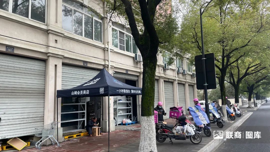 这家前置仓,并未像其它仓一样挂出“山姆云仓”字样门头,显得较为低调。只有留意到门口遮阳棚上的山姆元素,过路的行人才知道它是山姆的配送站点。