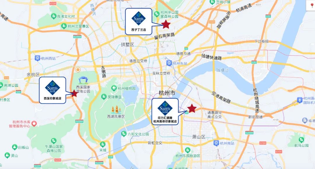 山姆会员商店杭州门店分布情况