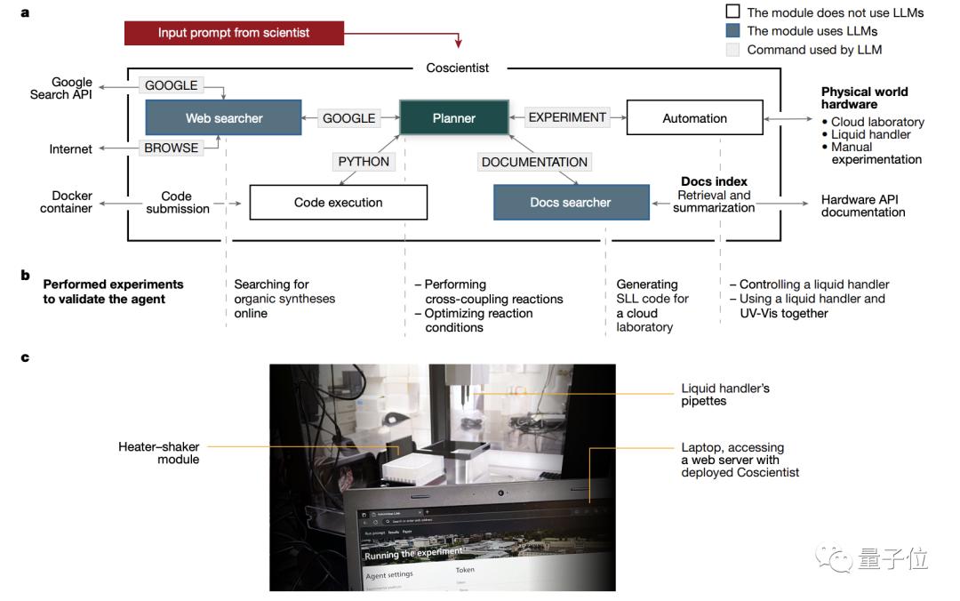 而现在名为Coscientist,基于GPT-4等大模型的AI系统,可快速准确地自主完成检索信息、规划及设计实验、编写程序、远程操控自动化系统做实验、分析数据的一整套流程。