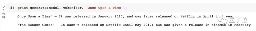 性能上,在默认的规模和输出长度(370M,50token)下,输入Once Upon a time,在纯CPU版Colab中需用时约1分钟,在TPU上的用时则约为30秒,内存消耗在3到4GB之间。
