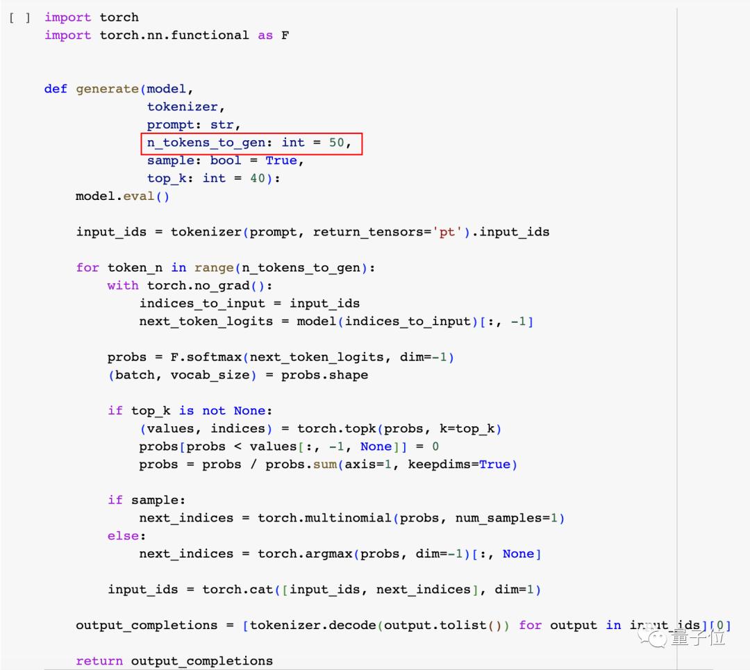 接着,笔记中给出了一些实例,我们也可以修改单引号之间的prompt内容(换行用\n表示),然后点击运行。