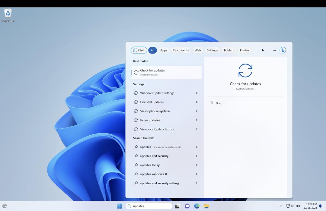 (2)步骤 2:进入 Windows 开始菜单,输入“更新”。