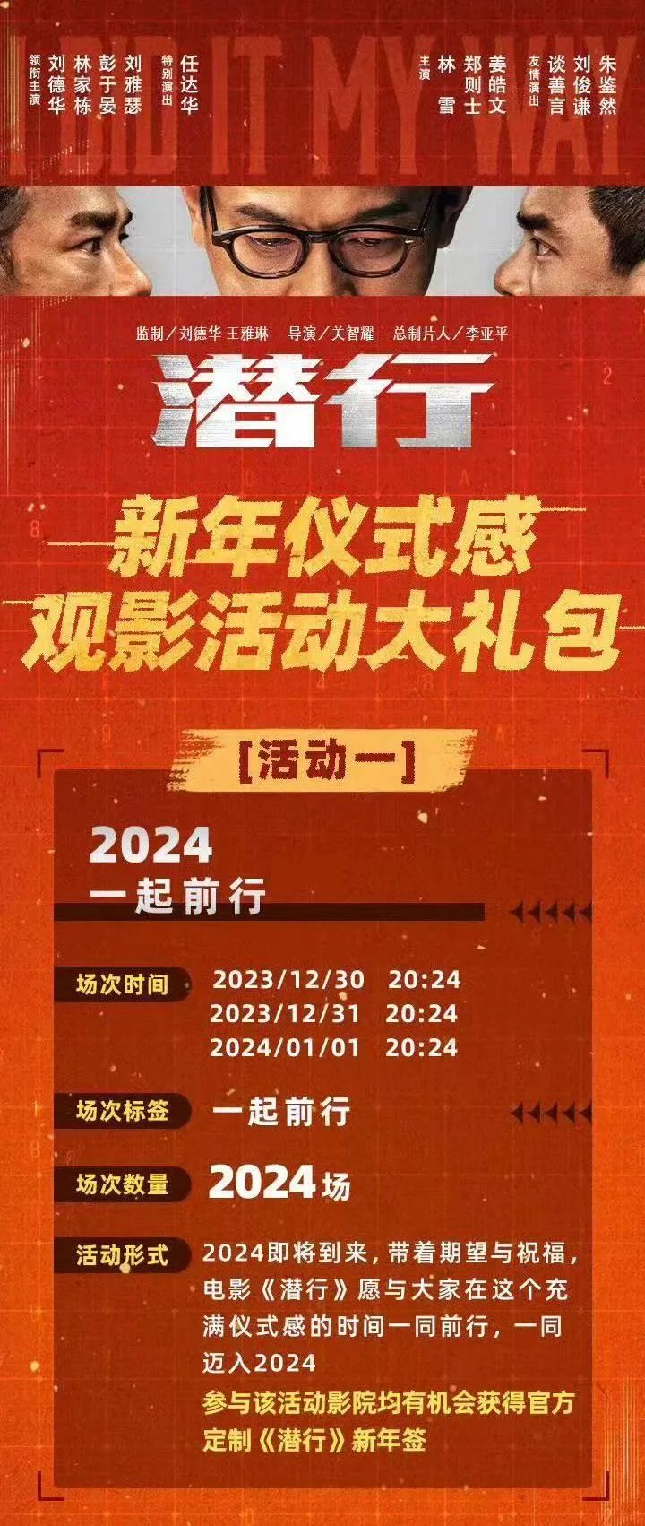 这一边《年会不能停!》在点映阶段发起“啤酒场”在影院现场派发啤酒,另一边《潜行》携手影院开设2024场限量新年签及彩票派发场次,《非诚勿扰3》则开设了限量的“橙”意满满特殊场,将在观影前向观众派发贴有片名LOGO的橙子。