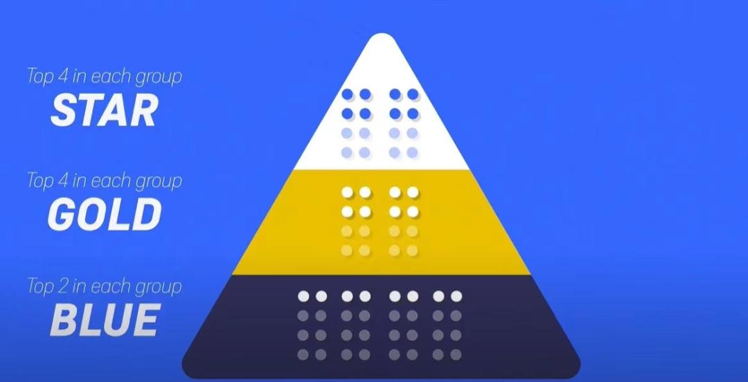 新提议的欧超将由64个俱乐部组成,分为三个级别联赛:明星联赛16支球队(2组8支)、黄金联赛16支球队(4组8支)、蓝色联赛32支球队(4组8支)。这一规模要远大于两年前的12支豪门球队。