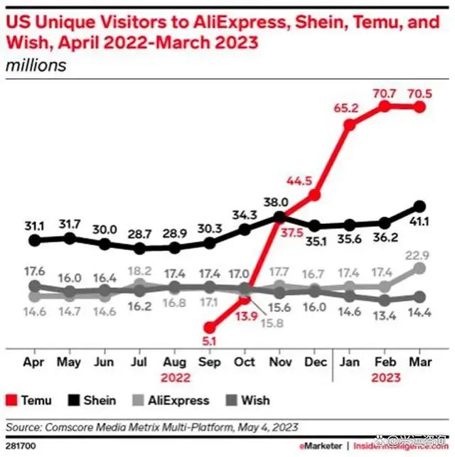 而把差距拉得如此之大的,莫过于TEMU的迅猛发展。
