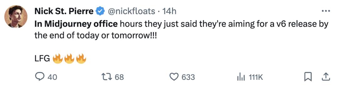 这不,好消息就来了,有网友表示,Midjourney V6正在进行最后一轮RLHF,风格微调完成后,会赶在圣诞节前发布。