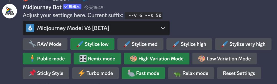 现在,你使用/setting命令,在模型选择框中,就可以选择V6 Beta版。