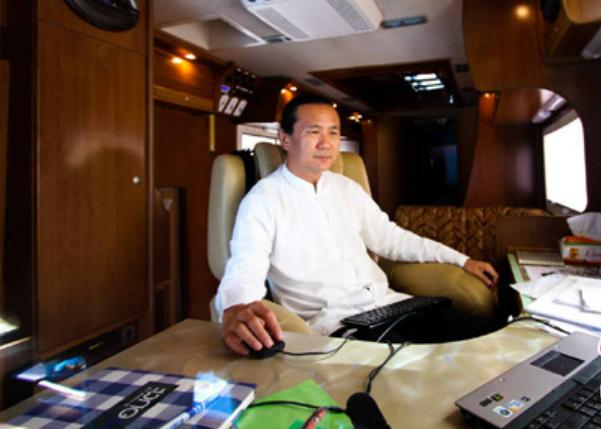 当时,邱威功亲手设计了5辆新型房车,每辆价值超过200万元人民币,并由他的工业园生产。房车相当于一个小型移动的“家”,里面装有豪华的卧室、浴室、会客区等,电视、电脑、按摩椅等设施一应俱全。