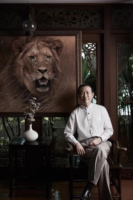 他总是绑着小马尾,上身着唐装,下身是飘飘的泰式绑腰长裤,加上近1米8的身高,一出场就气场十足。当然了,他的气场也来源于他的财富。