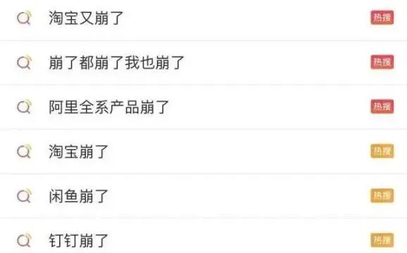11月12日下午,阿里云突发故障,进而导致淘宝、饿了么、闲鱼、钉钉、阿里云盘等产品挂掉,阿里全线产品“崩了”的消息随后陆续冲上热搜。在各个平台上,网友讨论火热,“双11不都过去了吗?”、“还好刚过双11”、“不能买买买了”。