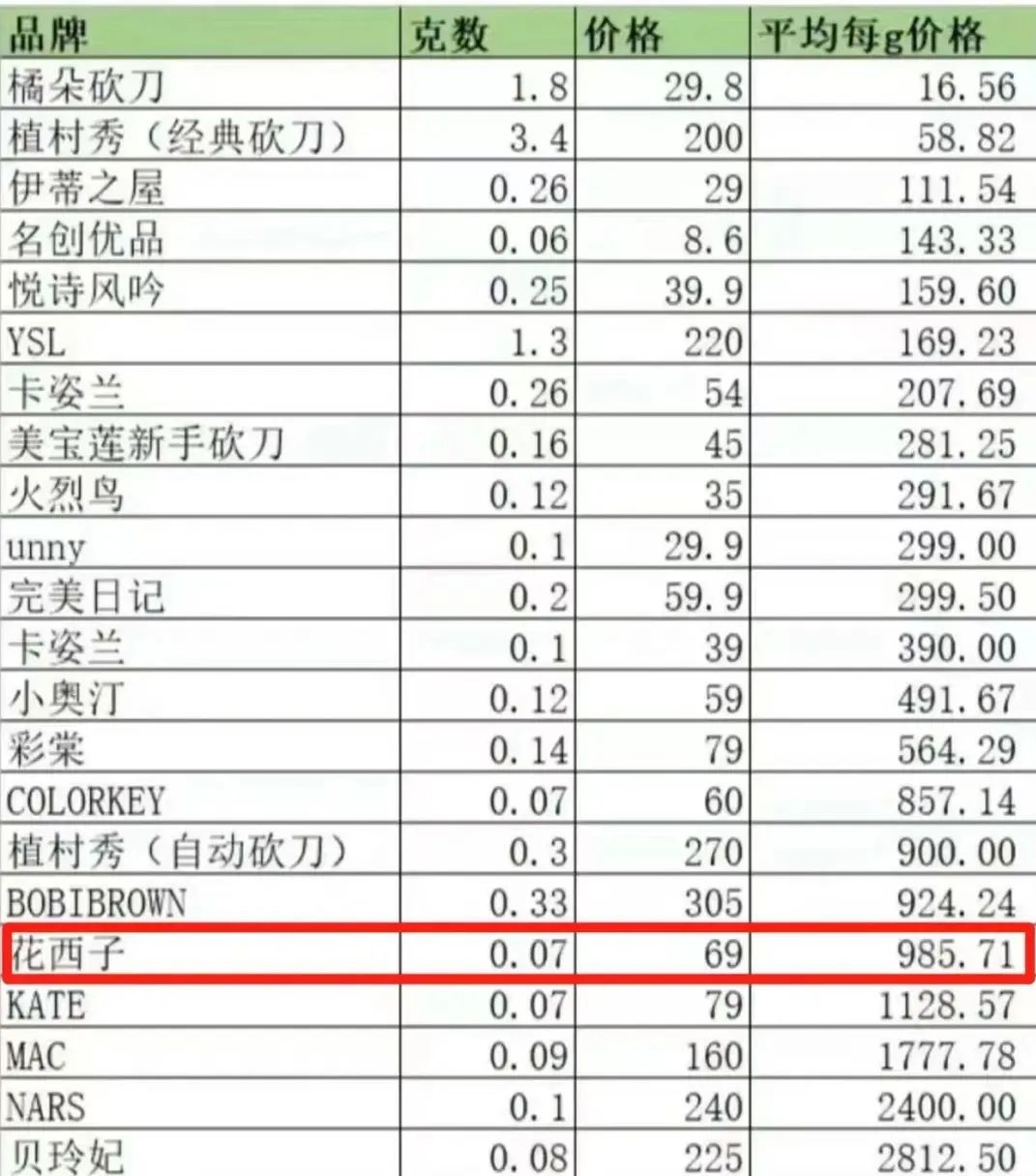 9月10日,李佳琦在直播间带货79元的花西子眉笔时回怼网友,也让“花西子眉笔贵不贵”的讨论上了热搜,打工人的专属货币单位“花西币”随之诞生,网友们纷纷认为“1花西币=79元人民币”。随后有网友发现花西子眉笔的克重单价也“遥遥领先”,平均每克价格985.71元,“比黄金还要贵”。