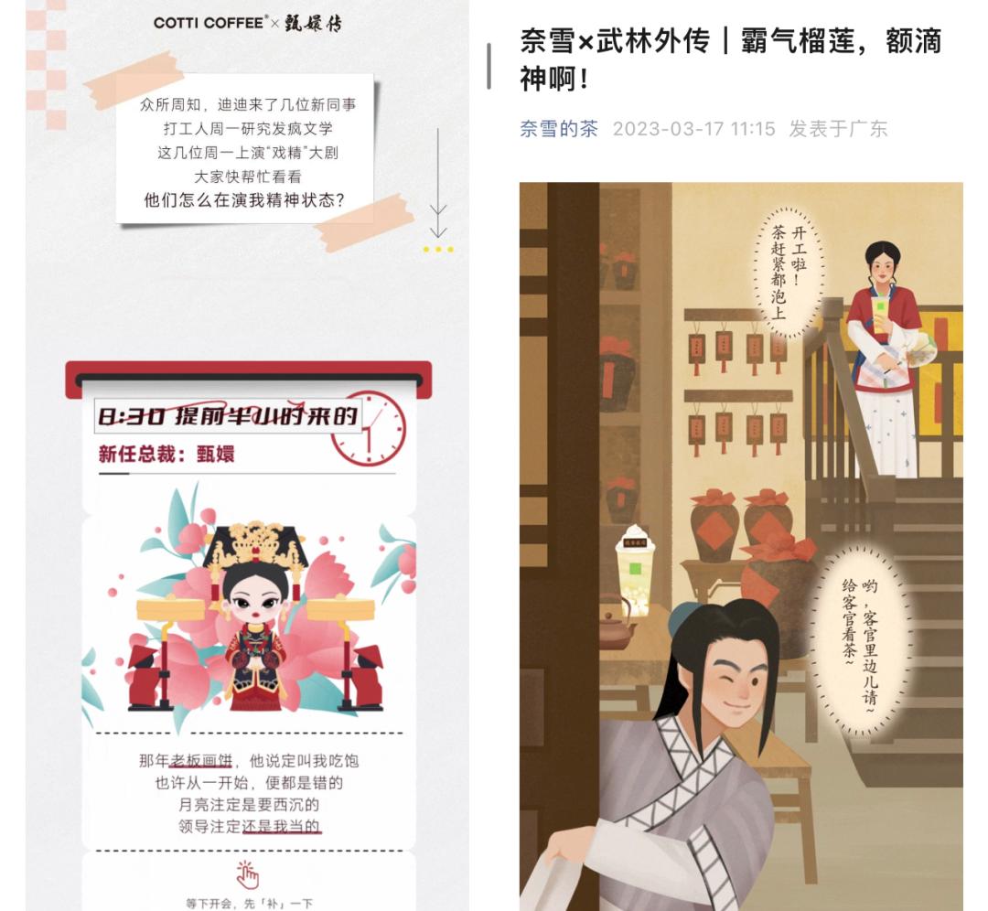 比如《武林外传》《甄嬛传》等“国民级”IP也是今年被茶饮咖啡品牌看中的合作伙伴。这类IP家喻户晓,影响力已延续十年以上,往往伴随着一代甚至几代人的成长,几乎已经成为了一种文化符号。品牌与之合作,市场教育的成本很低,联名后的成功率有很高保证。