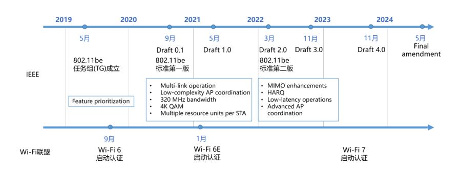 在最初的很多年里,世界上并没有“Wi-Fi 几代”这样的说法,直接就用802.11后面加几个字母这样的协议编号,对普通用户非常不友好。Wi-Fi联盟为了使标准名称更容易识别和理解,以更好地进行宣传推广,其在2018年将IEEE 802.11系列标准简称为Wi-Fi,而Wi-Fi 7正是无线局域网IEEE 802.11be标准的简称,是Wi-Fi 6的演进方向。