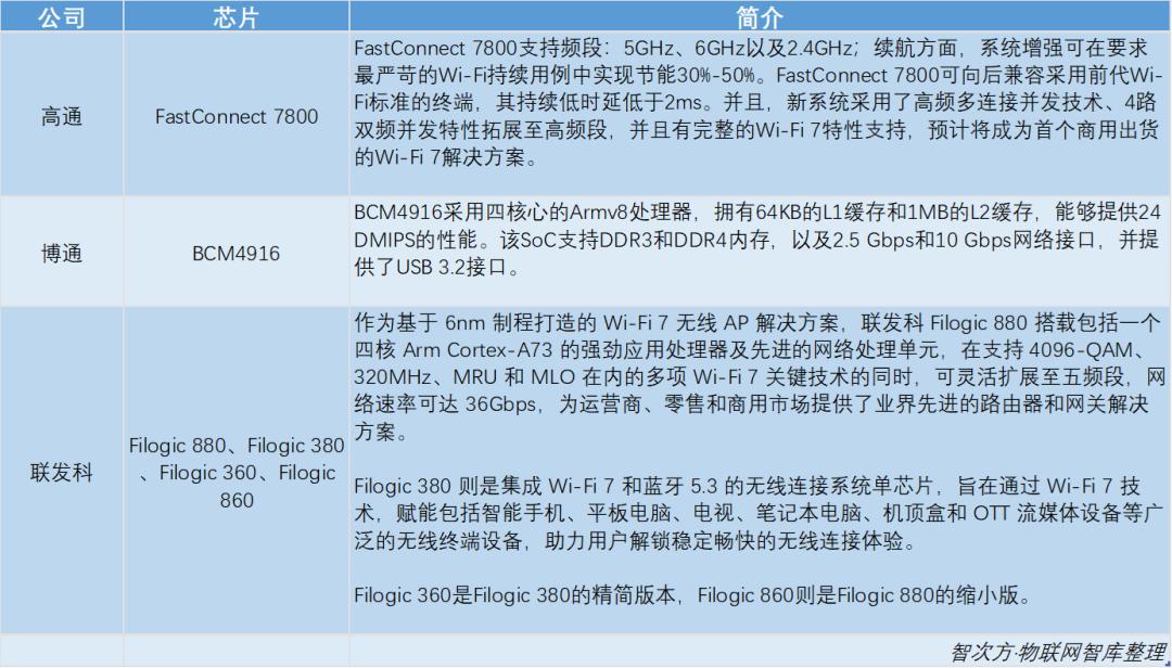 表:全球头部 Wi-Fi 7 厂商芯片产品汇总