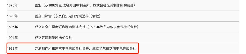 实际上,如今的东芝是在 1939 年时,才由东京电器和芝浦制作所两个公司合并而成的。