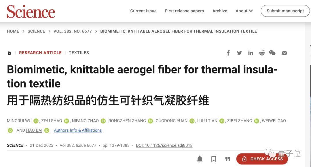浙大“北极熊毛衣”登Science,保温效率达羽绒服5倍