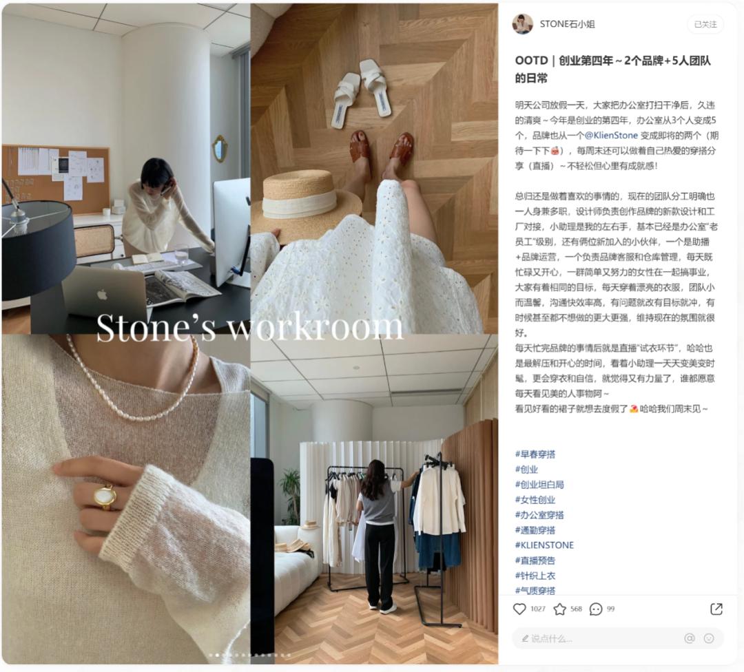 当然也有很多,像@stone石小姐一样,本身是小红书品牌主理人,自己也从小红书博主变成买手的电商个体的路径。