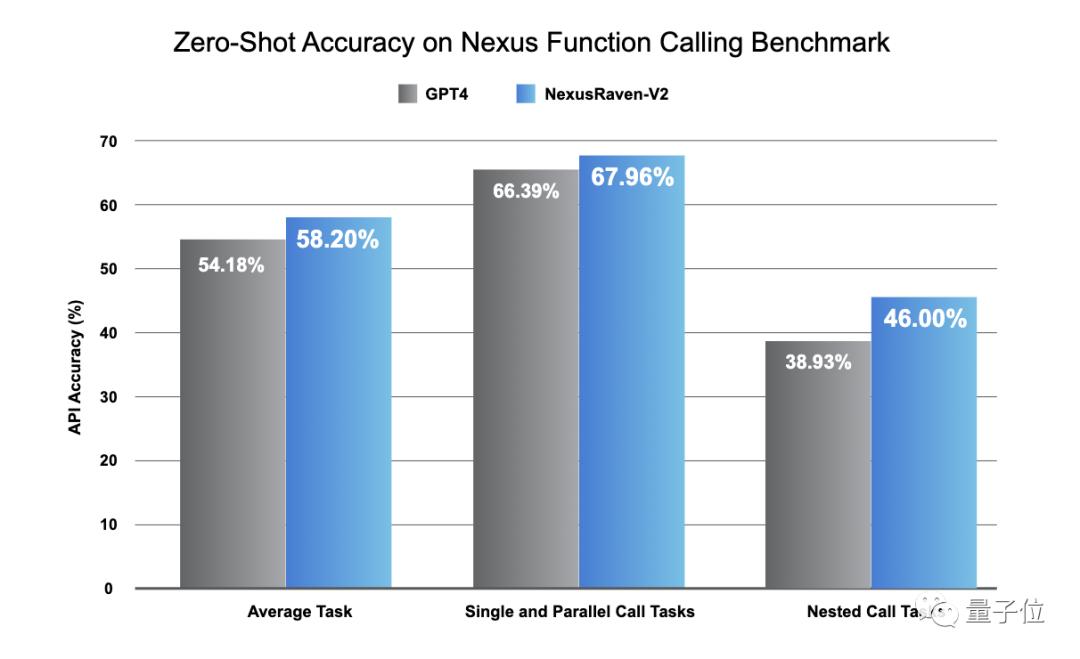 但如果再单看复杂的嵌套函数调用任务,NexusRaven-V2的成绩比GPT-4表现得要更好,直接高出了7个百分点。