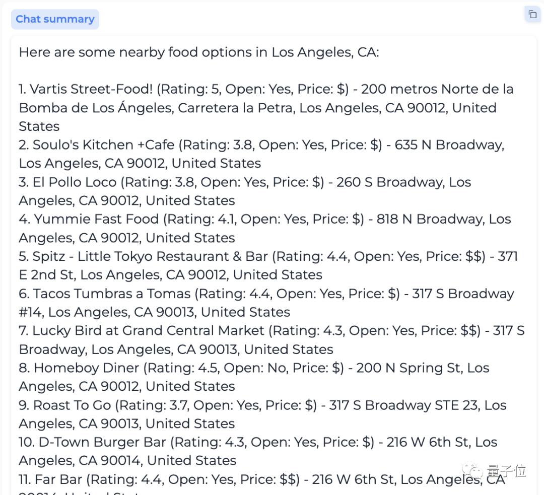 只需问它“Get me good food nearby?”,它就能立刻编写出几行代码,然后开始定位你的城市、将城市坐标转换为经纬度、领取目标任务(20个饭店建议)以及按距离从远到近排序。