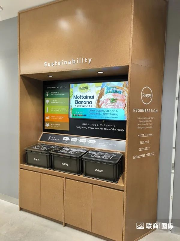而全家开在麻布台Hills这个店的独到之处在于,策划可持续发展主题,以再生(REGENERATION)、再考(RETHINK)、再利用(REUSE)三合而一为主题作为定位。