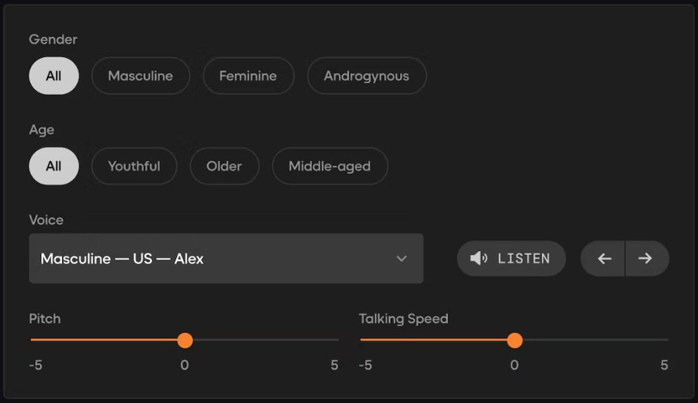 「角色引擎」可以使用内置语音设置以最小化延迟,并配置角色的性别、年龄、音调和说话速度。或者,使用类似像「ElevenLabs」这样的第三方服务来创建自定义和复刻声音。