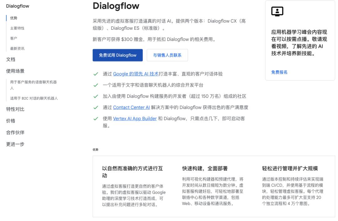 API.AI被Google收购后更名为Dialogflow,集成进了Google Cloud之中,成为了市场上最受欢迎的对话式AI平台。