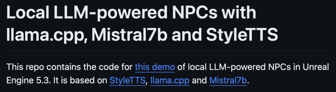 具体来说,Joe Gibbs使用llama.cpp和Mistral7b来创造对话内容,并利用StyleTTS2来生成语音,同时使用Unreal Engine 5来进行场景渲染。