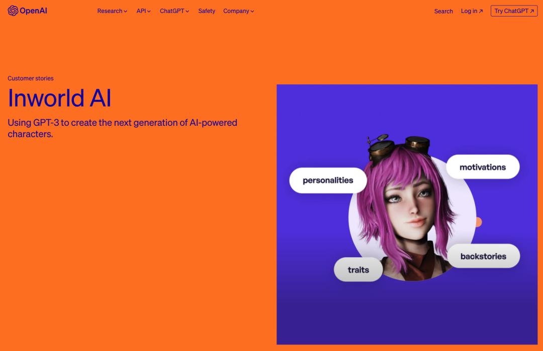 在2022年底推出了一款利用GPT-3来生成游戏NPC对话内容的工具,成为了OpenAI的官方宣传案例。