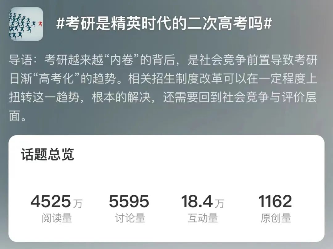 社交媒体上,考研的重要性被不断拔高,有了“二次高考”的别称。
