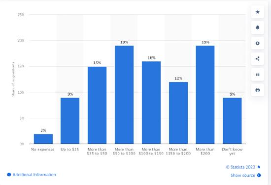 那么,美国人都给孩子送多少钱的礼物?今年的一项调查显示,一半美国人给孩子的礼物金额都在25-150美元之间,只有19%愿意给孩子超过200美元的礼物。而只有11%的人会送孩子不到25美元的礼物。