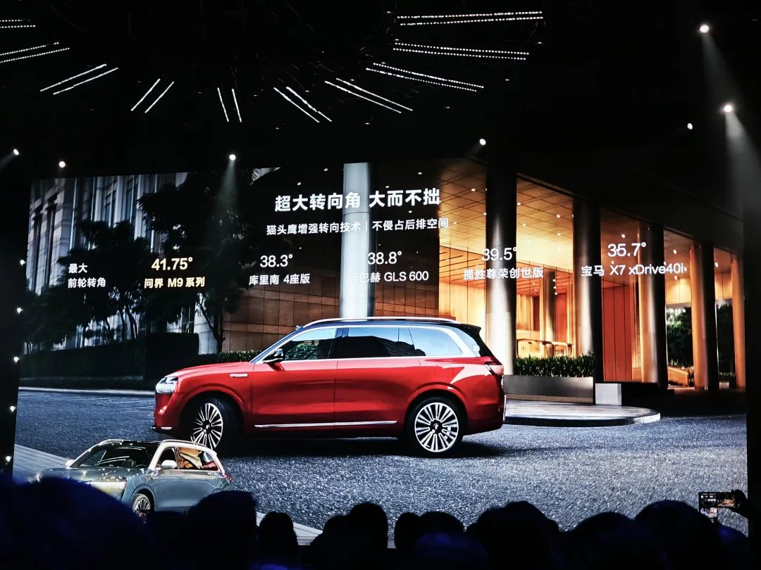 一是问界M9配备了猫头鹰增强转向技术,最大前轮转角高达41.75度;二是拥有5.8m的最小转弯半径;三是车身轻量化系数为2.02,比迈巴赫GLS更轻量。