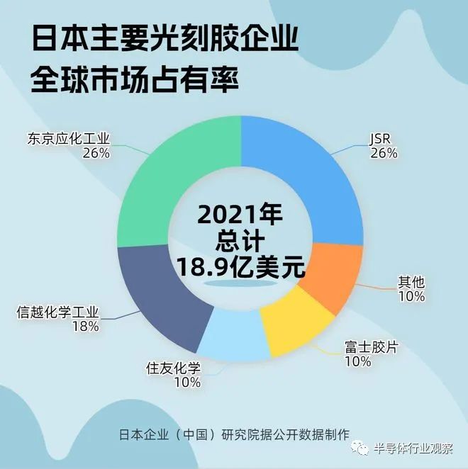 尽管彼时迅速崛起的日本半导体已经受到了美国的压力和限制,增速放缓。但由于业内对光刻胶的重视程度较低,且市场占有率过低,光刻胶不在美国限制日本半导体发展的产品范围内。