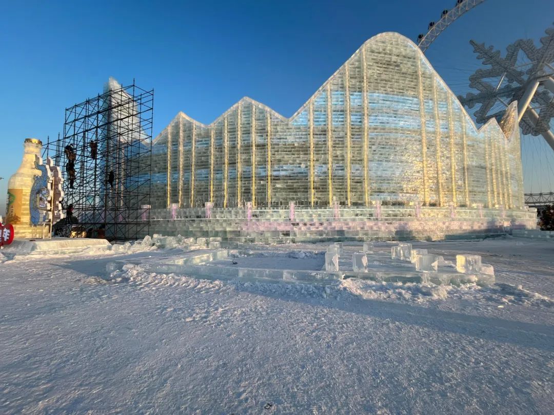 要知道,每一届哈尔滨冰雪大世界,都需要采冰人到松花江上采冰,制成冰块后再经过冰雕工匠的精心雕琢,才有了园区内上千座美轮美奂的冰雪景观。