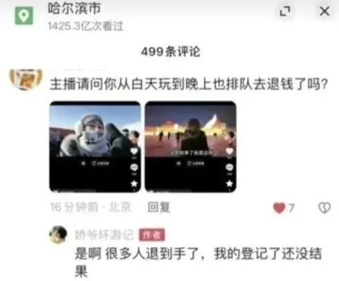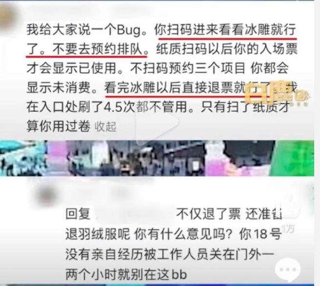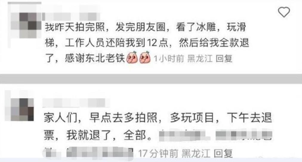 这原本是一起因“旅游体验不佳”而起的退票事件,给部分游客退票似乎也存在一定合理性。但很快,这段“白嫖经历”竟然成为了部分退票游客炫耀的谈资,有人直言自己拍完照、看完冰雕、玩过滑梯还发了朋友圈,一直玩到晚上12点,结果还全额退了票。