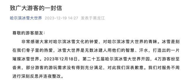 冰雪大世界还真道歉了。