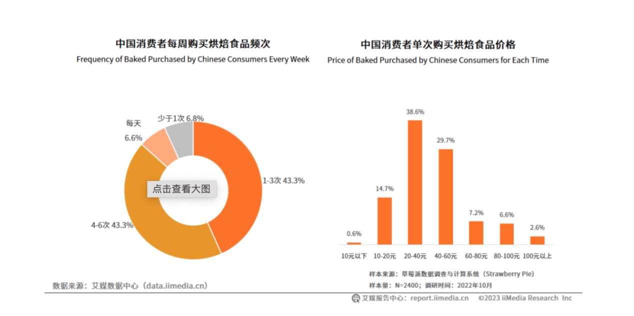 据艾媒咨询的《2023年中国烘焙食品行业现状及趋势研究报告》显示,每周至少购买一次烘焙食品的消费者占比达到93.2%,其中每天购买烘焙食品的消费者达6.6%。另外,相比2021年,每周购买4-6次的消费者占比提升。