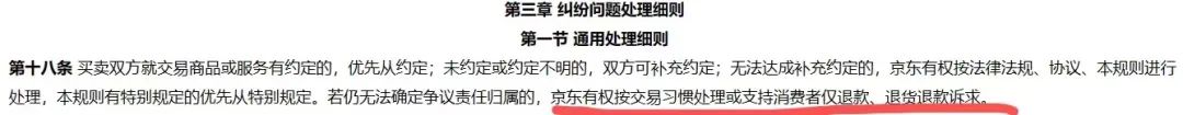 而淘宝的仅退款,主要基于对卖家的店铺品质指标、客诉等负面信息来判定,如若符合相关情景,将直接做出仅退款的的支持;京东则表述为”京东有权按交易习惯处理或支持消费者仅退款、退货退款诉求。”