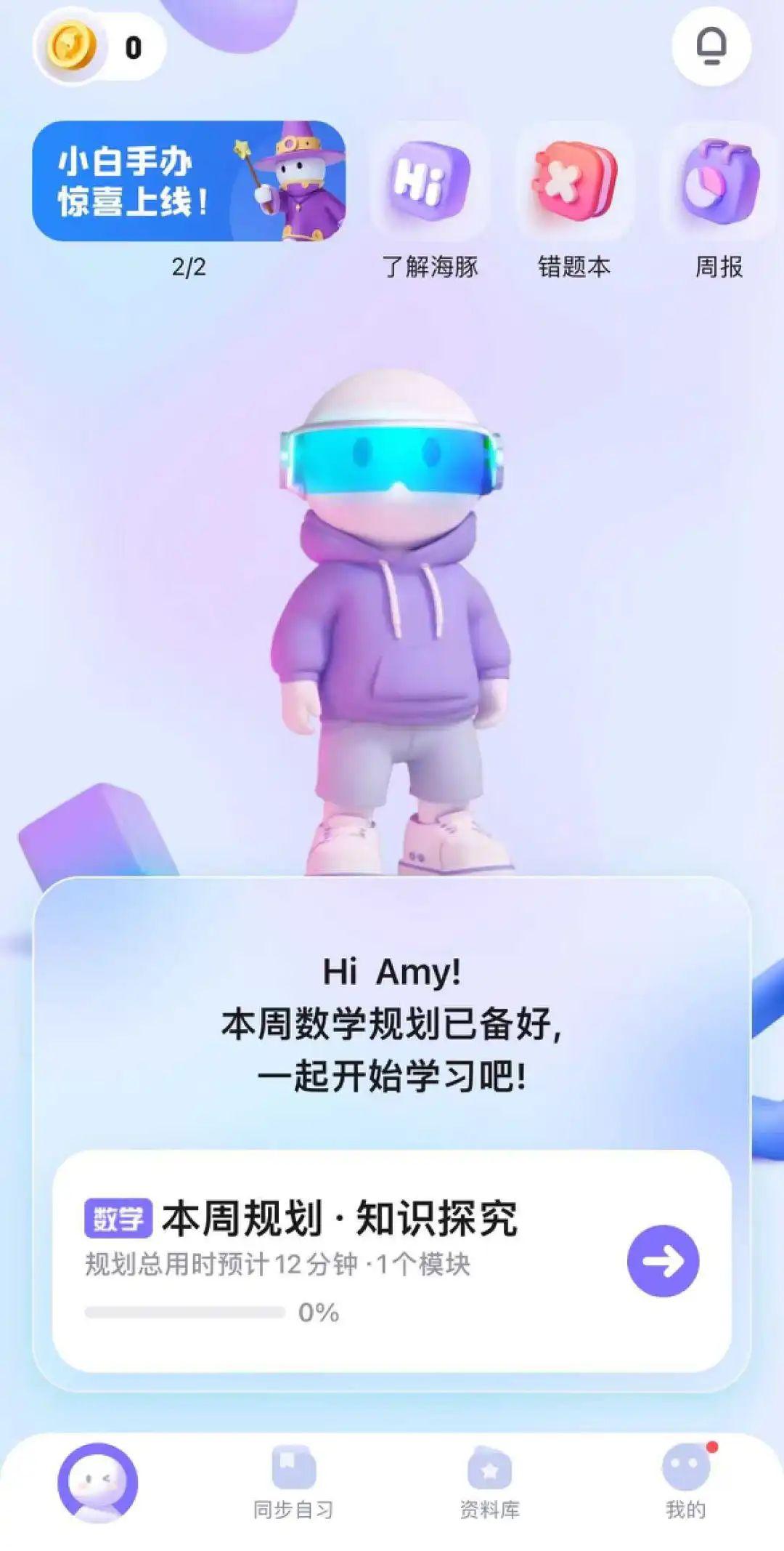 在猿力科技旗下智能学习产品“海豚AI学”,打开App,首页醒目的Al小白全程智能伴学,看动画课程视频时遇到不懂的问题可以随时问“小白”。“AI答疑”功能针对学习问题,提问者可以通过“海豚自习App”获得苏格拉底启发式引导,逐步启发思考并得出结论。