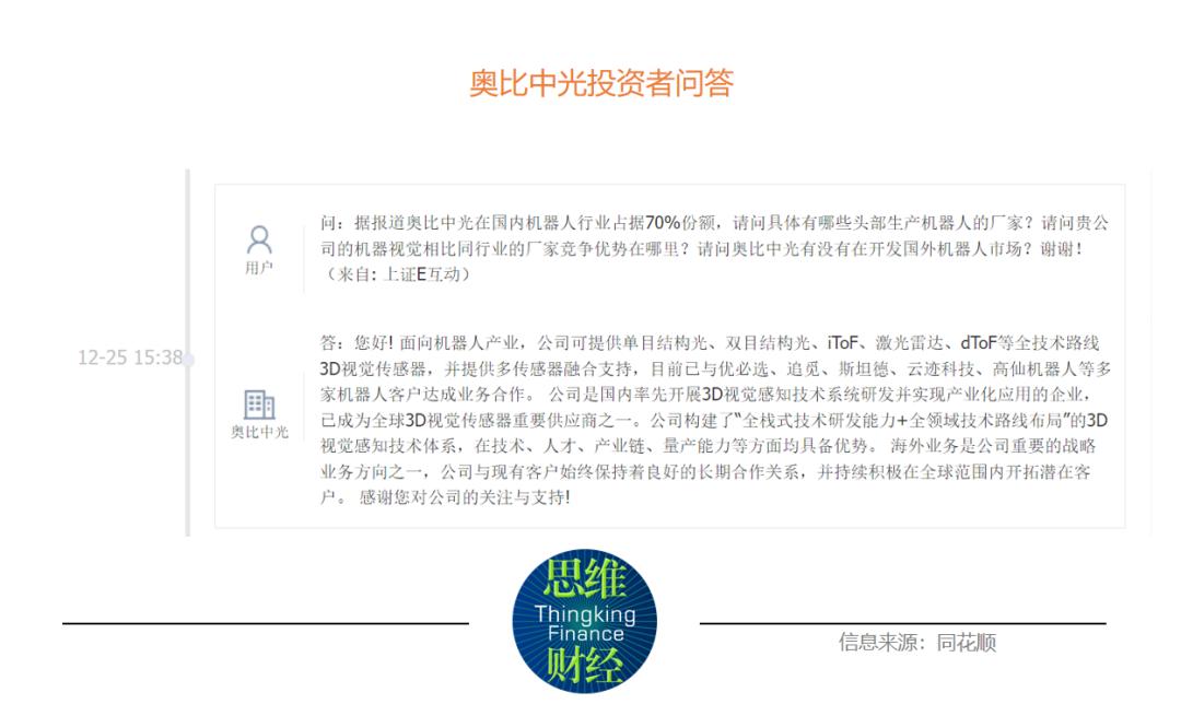 有投资者对奥比中光的机器人业务表示关注(见下图)。