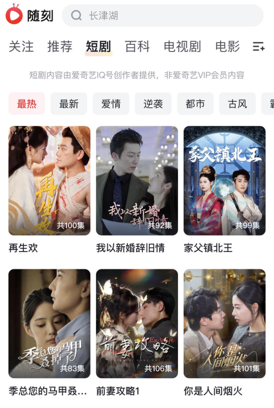 爱奇艺随刻App推出短剧频道,同时用小字注明了“免责声明”。(图/随刻App)