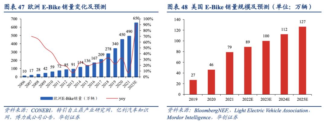 上述投资人补充道,日本的E-Bike渗透率已经较高,欧洲的E-Bike销量增速最快,其中德国、法国、荷兰是欧洲前三大市场,也是中国企业的出海重点;其次是美国市场。