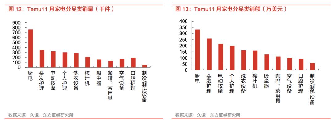 东方证券的数据显示,今年11月,Temu上的厨房小家电销量达76.6万件,销售额达到333万美元;个护小家电销售额在673万美元以上。