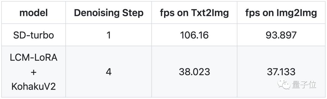 CM-LoRA+KohakuV2模型在4步的情况下,文本-图像每秒帧率为38,图像-图像每秒帧率为37。