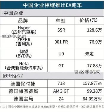 广汽埃安推出“昊铂SSR ”、吉利的极氪推出了“001 FR”、比亚迪的“仰望”推出“U9”,中国车企纷纷向EV跑车伸出触角。日本车企60年代也曾经通过跑车的投放推动全球市场开拓。借助低价车培育市场,竞争激烈之后开发跑车……