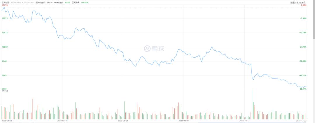 “功能性护肤第一股”薇诺娜也因敏感肌赛道竞争加剧、对单一产品过度依赖、品控失衡等一系列问题,股价从年初108.31元/股的高位,一路暴跌至年底的65元/股附近。