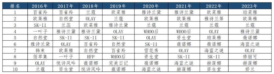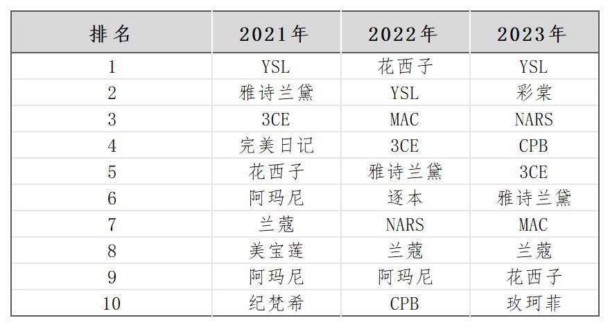 不仅仅是花西子,近两年天猫美妆双11TOP10的榜单已经看不到完美日记、佰草集品牌的身影。