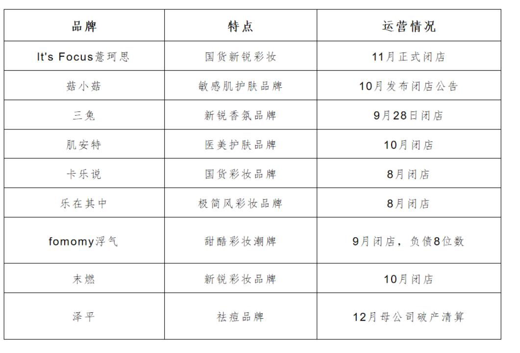 除此之外,菇小菇、三兔、肌安特、卡乐说、乐在其中等新国货品牌纷纷闭店,fomomy浮气负债高达8位数、泽平母公司进入破产清算阶段。2023年新国货美妆品牌的失速仅是开端,2024年将会面临更残酷的竞争。